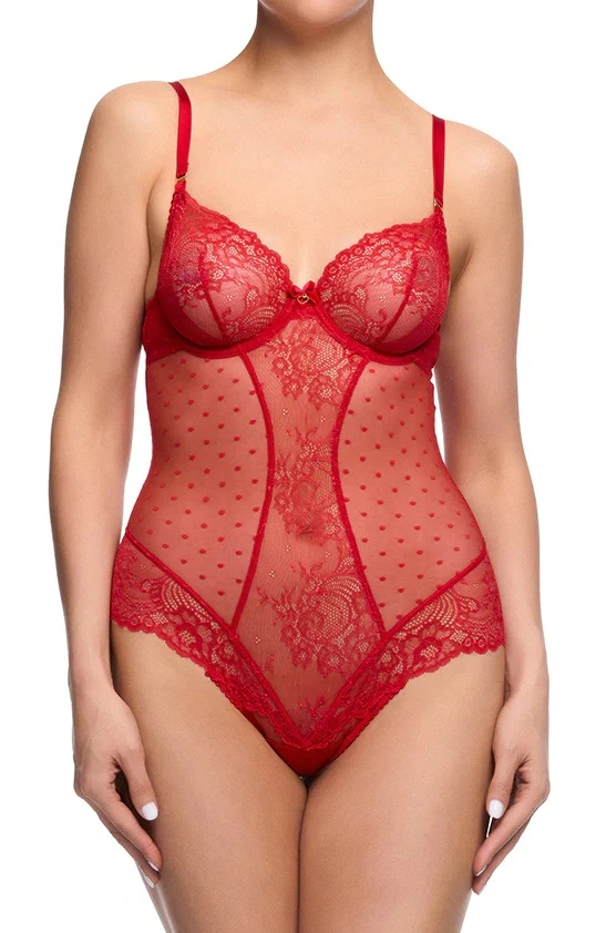 dentelle douce et extensible et d’une maille à pois grêle. Il s’agit d’un body