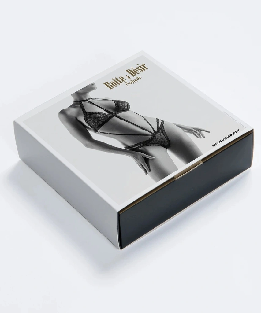 Dans la ligne des Boîte à Désir, Aubade donne aux amants ses Liens de Velours, promesse d’innombrables plaisirs et de jeux de séduction. Dans un velours élastique qui épouse subtilement le corps, les ensembles s’offrent, enlaçant les courbes de leurs formes sexy. Les parures coquines dévoilent la féminité tout en la sublimant.