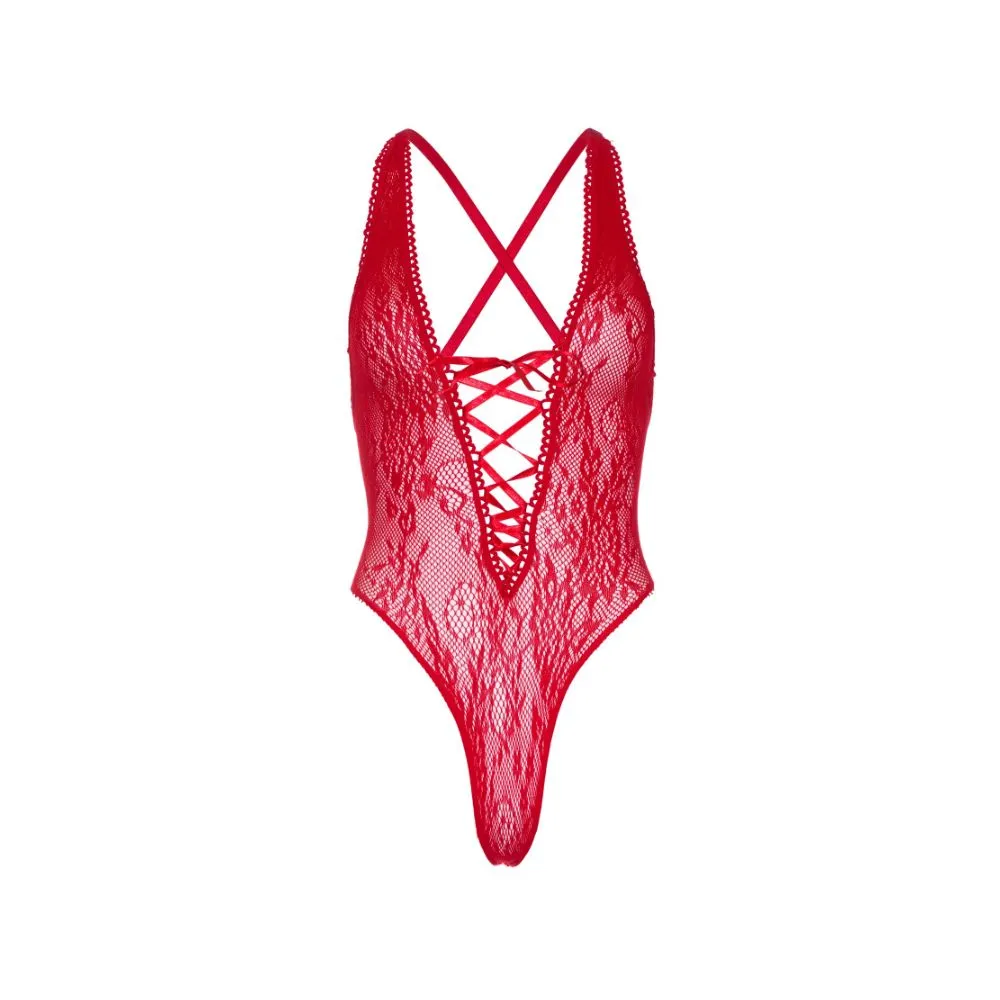 Body String Tout Dentelle Ultra Sexy Laçage à L’entre Seins LEG AVENUE 89248 – Rouge 003