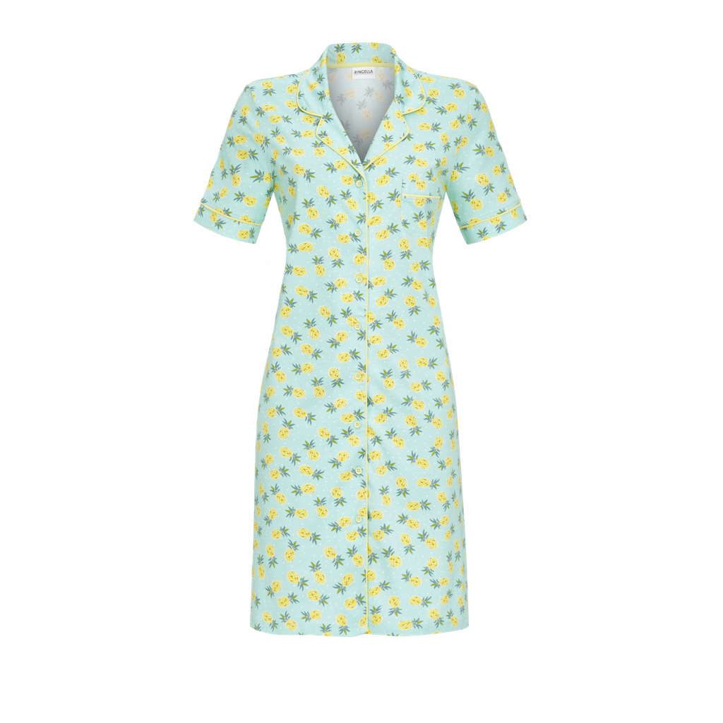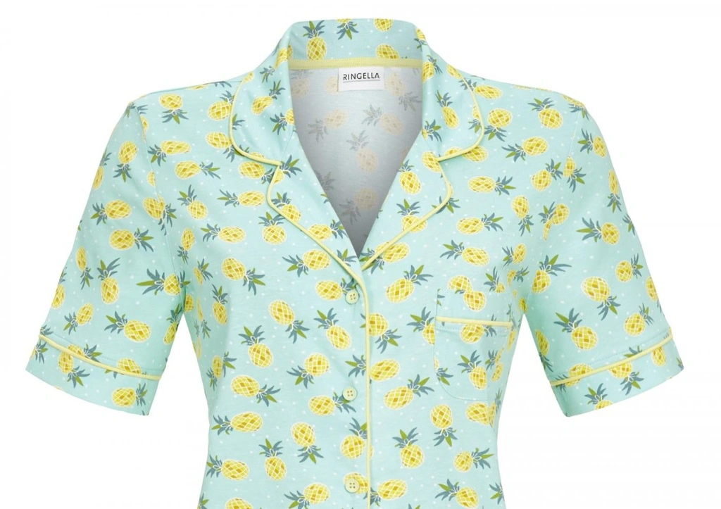 La belle allure fait le charme de ce modèle. Un design all-over avec des ananas orne ce modèle. Ouvert en forme de revers boutonné avec passepoil contrasté sur l’encolure, les manches et la petite poche poitrine. Le coton doux en qualité jersey simple est agréable sur la peau. Le matériau est respirant et facile d’entretien.
