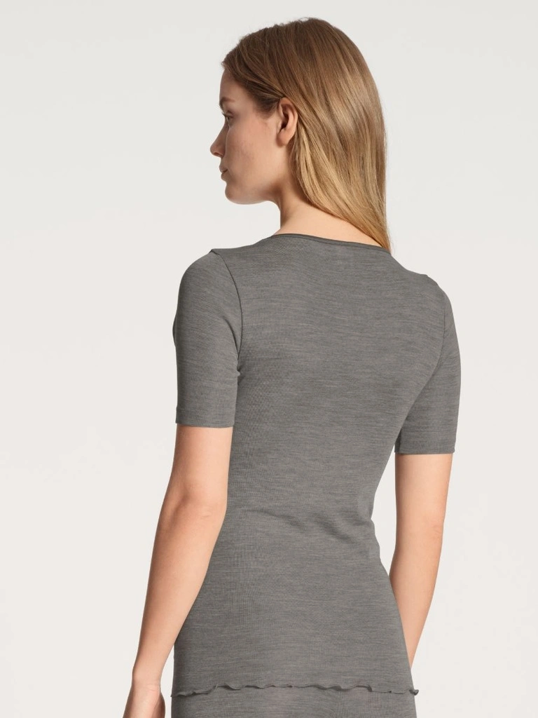 Chemisette Court Manche Laine & Soie CALIDA « True Confidence » 14535 – Platin Melé 857