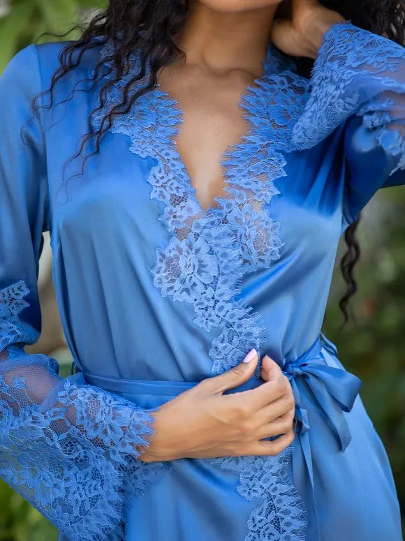Le déshabillé court Ruby à nouer au creux de la taille, orne le corps de sensualité avec ses détails de dentelle saisissants.
