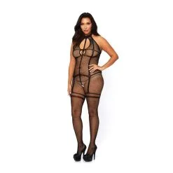 Body Entier Transparent & Porte Jarretelle – Plus Size Bodystocking – LEG AVENUE 89175X – Noir 001