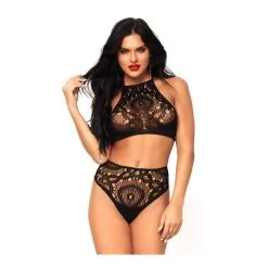 Top Sexy Dentelle Lanières & String – 2 Pièces – LEG AVENUE 81552 – Noir 001