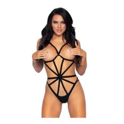 Body Entier Transparent Ouvert à L’entre Jambe & Strass – Plus Size Bodystocking – LEG AVENUE 89232X – Noir 001