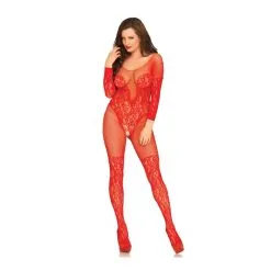 Body Entier Transparent Ouvert à L’entre Jambe – Bodystocking – LEG AVENUE 89190 – Rouge 003