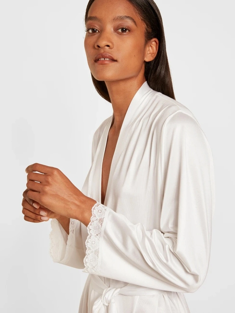 La nouvelle série 100 % NATURE ROMANCE, certifiée Cradle to Cradle®, combine romantisme et dentelle séduisante avec du satin luxueux et du coton doux à l’intérieur. Avec leur très majestueux coloris star white, les modèles de la série 100 % NATURE ROMANCE peuvent être portés lors de la nuit de noces ou le lendemain matin après le grand jour. Ce kimono chatoyant et élégant de CALIDA est indispensable à toutes les garde-robes de mariage.