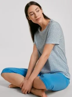 Pyjama Short 3/4 Dame 100% Coton CALIDA « Spring Nights » 40296 – Azurit Blue 474