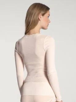 Chemisette Manche Longue Dentelle Laine & Soie CALIDA « Richesse Lace » 15990 – Light Ivory 090