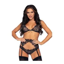 Soutien-gorge Sexy & String & Porte-jarretelle Avec Strass – 3 Pièces – LEG AVENUE 81621 – Noir 001