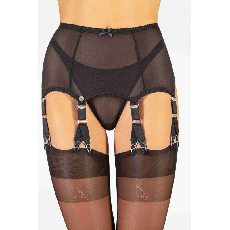 Le modèle CHENONCEAU offre 6 jarretelles assorties chacune de 2 boucles disposées en Y avec attache métal et dos en tissu renforcé, respectueux des bas et de la peau.
