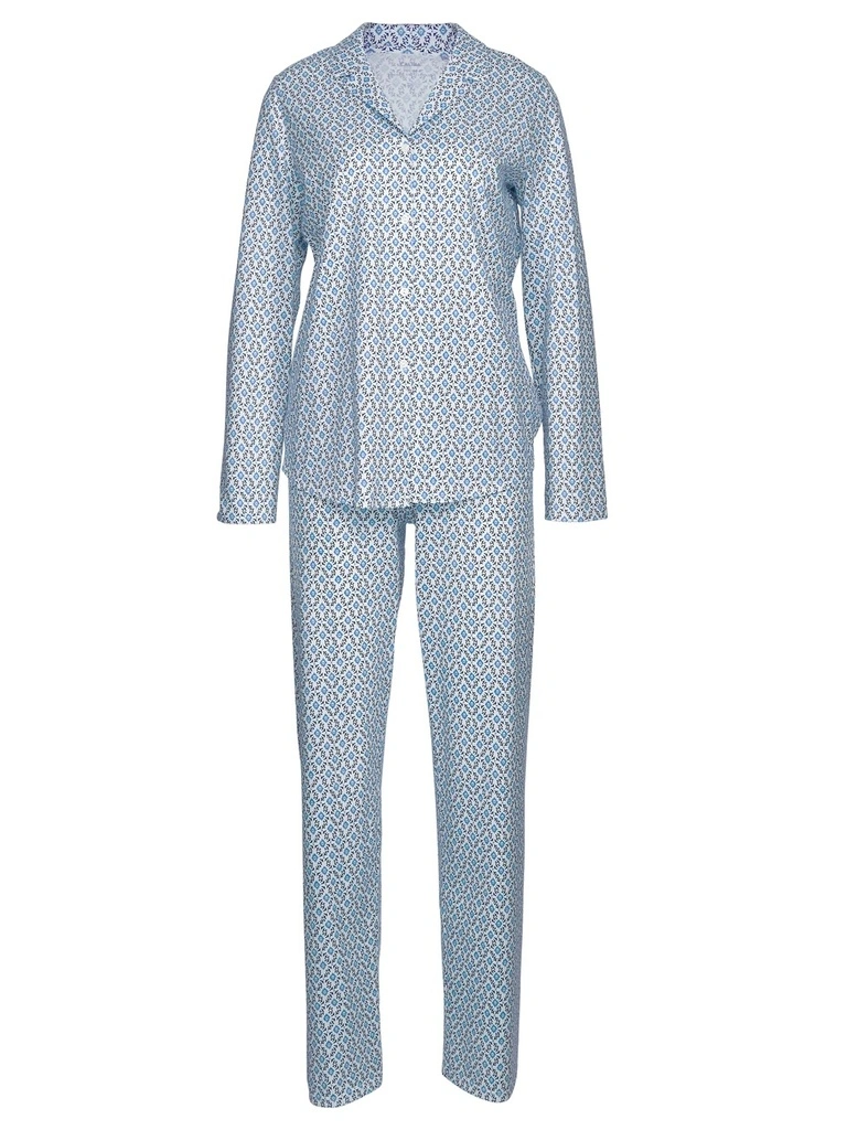 Pyjama pour femmes boutonné sur toute la longueur de la série SPRING NIGHTS de CALIDA. Ce pyjama séduit non seulement par son design, dont l’imprimé mosaïque reflète l’éclosion de la nature, mais aussi par son fin jersey de coton. La patte de boutonnage et le col à revers garantissent un look Boyfriend très tendance.