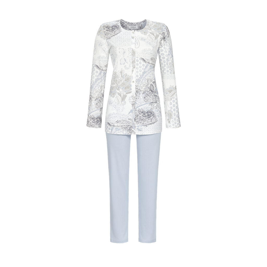 Ce pyjama présente un design tendance. Le design prend tout son sens dans des couleurs hivernales pastel sur un fond clair. Un élégant passepoil en satin orne l’encolure et l’ourlet des manches. Le haut boutonné est très pratique. Le pantalon uni est parfaitement assorti. Le pyjama en coton de haute qualité laisse une agréable sensation sur la peau et fera rapidement du modèle un favori.