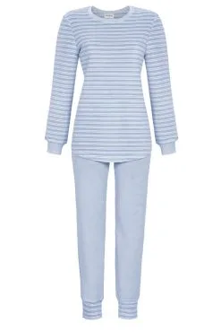 On se sent vraiment bien dans ce pyjama. Confectionné dans un mélange coton-polyester doux et douillet en qualité éponge stretch, ce modèle est agréable à porter. Avec poignets tricotés au col et aux manches. L’ourlet est à la mode légèrement arrondi. Le pantalon de couleur unie est composé d’une ceinture élastique. Des poignets annelés décorent le bas du pantalon. Le matériau assure un bon climat cutané, est câlin et garde son ajustement optimal.