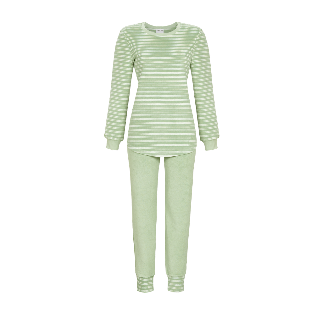 On se sent vraiment bien dans ce pyjama. Confectionné dans un mélange coton-polyester doux et douillet en qualité éponge stretch, ce modèle est agréable à porter. Avec poignets tricotés au col et aux manches. L’ourlet est à la mode légèrement arrondi. Le pantalon de couleur unie est composé d’une ceinture élastique. Des poignets annelés décorent le bas du pantalon. Le matériau assure un bon climat cutané, est câlin et garde son ajustement optimal.