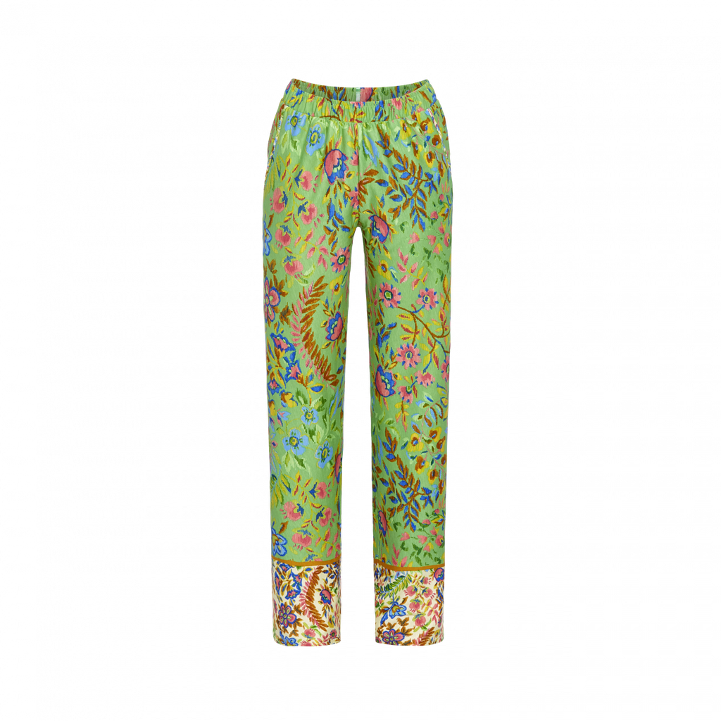 Un véritable feu d’artifice de couleurs s’offre à vous avec ce pantalon tendance. Très actuel avec un imprimé bordure tendance sur l’ourlet de la jambe du pantalon. Les poches latérales ne doivent pas manquer. La matière faite d’un mélange coton-modal est souple sur la peau et a des couleurs brillantes.