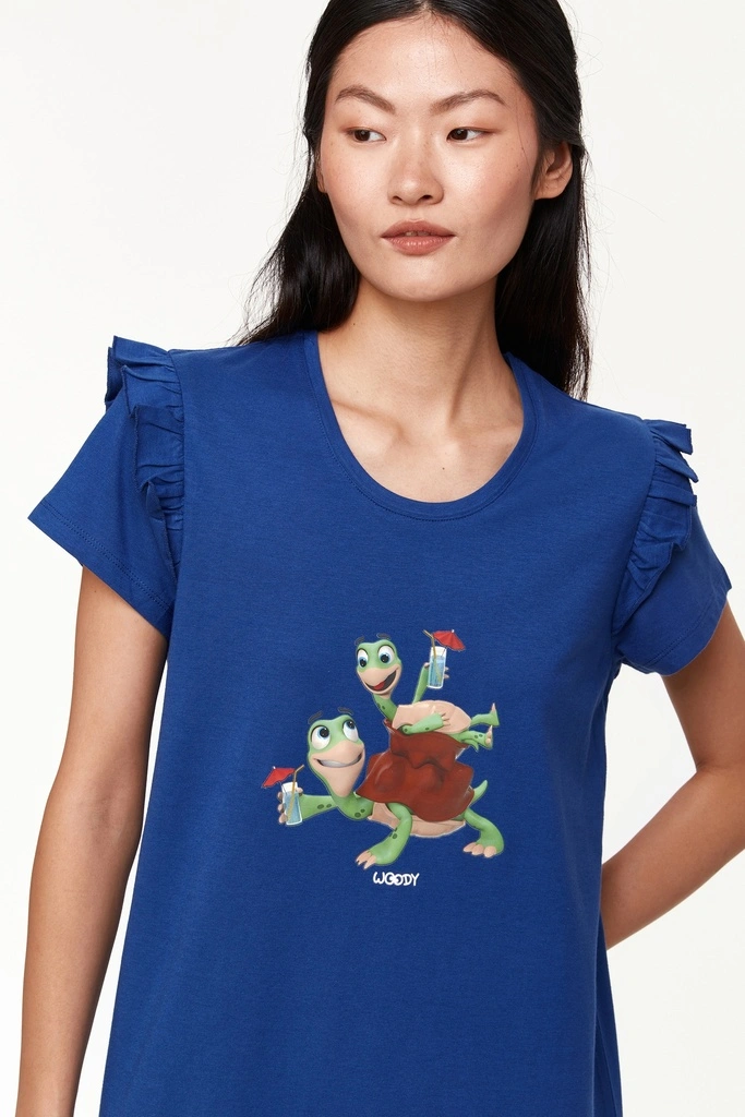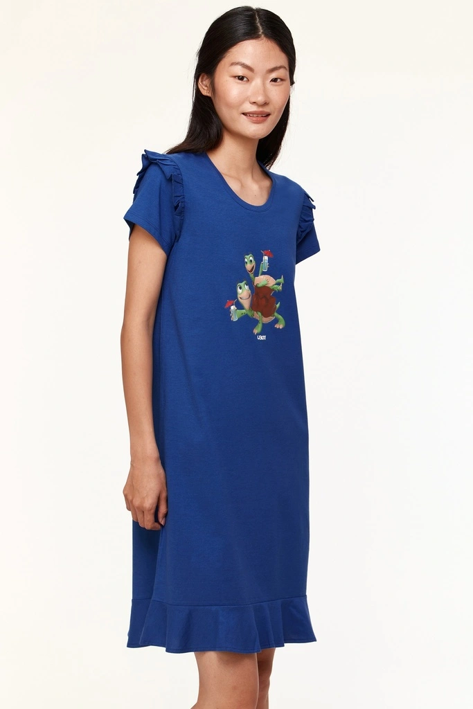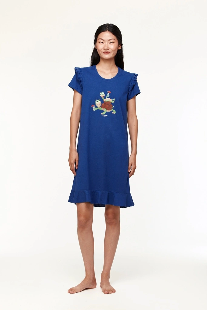 Une robe de nuit au thème « Tortues » en 100% coton jersey, à courtes manches et légèrement évasée dans le bas.