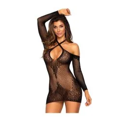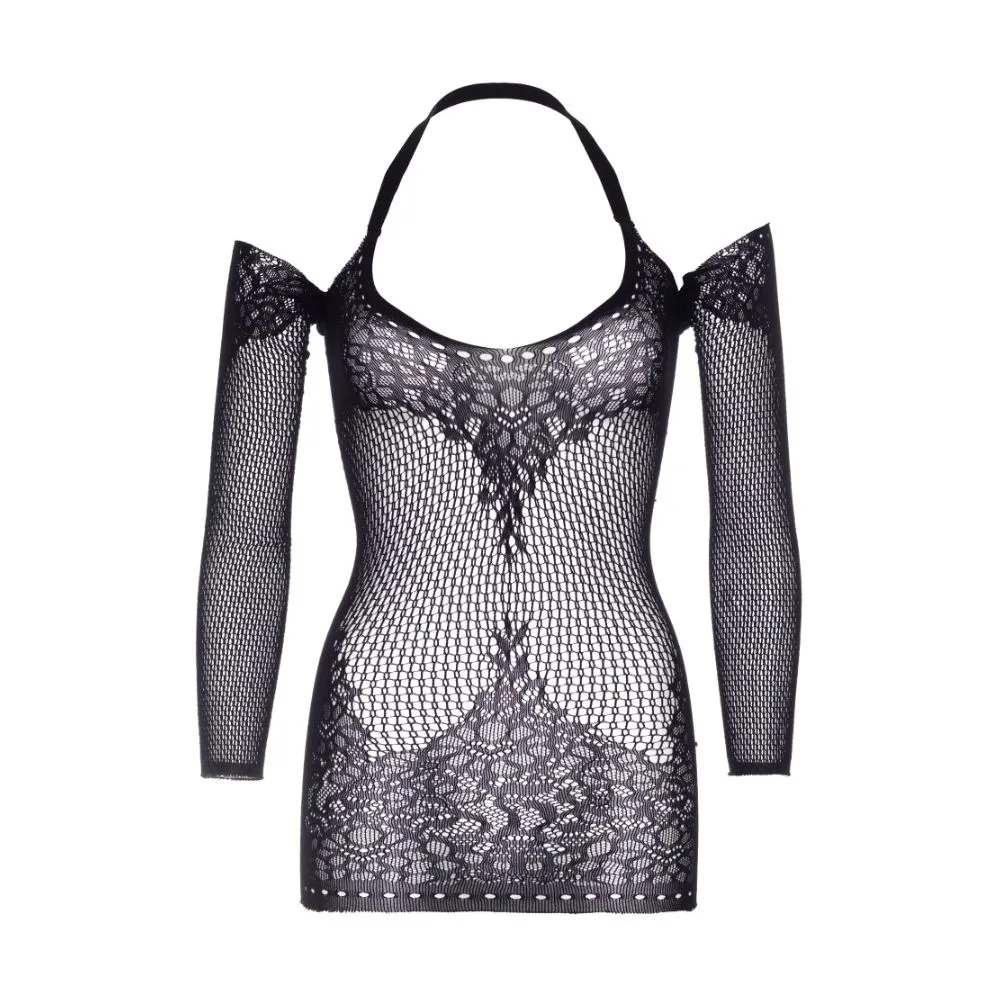 Robe Sexy Dentelle Et Résille Transparente LEG AVENUE 86956 – Noir 001