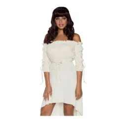 Robe paysanne super sexy en gaze avec lanières à la ceinture et aux manches.