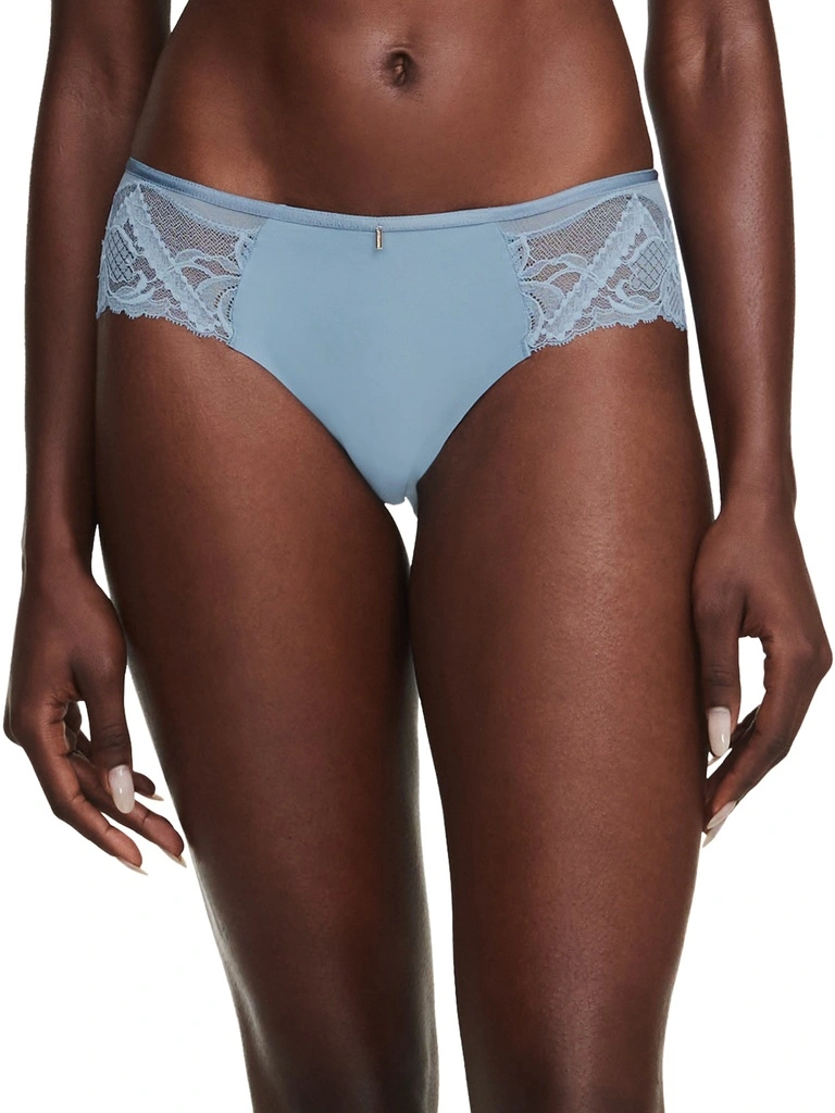 Shorty couvrant en maille lisse et douce sur le devant, opaque et invisible sous les vêtements Dos et côtés en dentelle Levears et tulle pour plus de transparence Fond de slip coton Bijou doré siglé Chantelle sur le devant