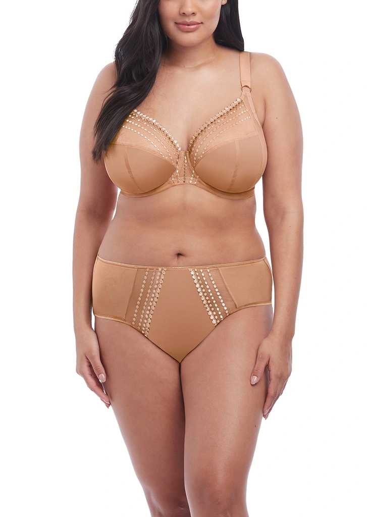 Le string Matilda en Café Au Lait présente un style contemporain doté d’une broderie en forme de perles posée par dessus des panneaux latérales transparents. Offrant une coupe moins couvrante, il est doublé sur l’avant et transparent au dos.