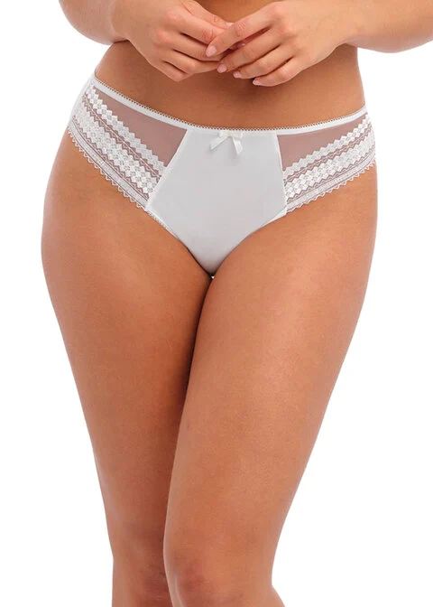 Conçu dans un tissu doux au toucher et complété d’une broderie géométrique transparente, le slip Fantasie Rebecca en noir est à découvrir. Disponible en taille XS à XXL.