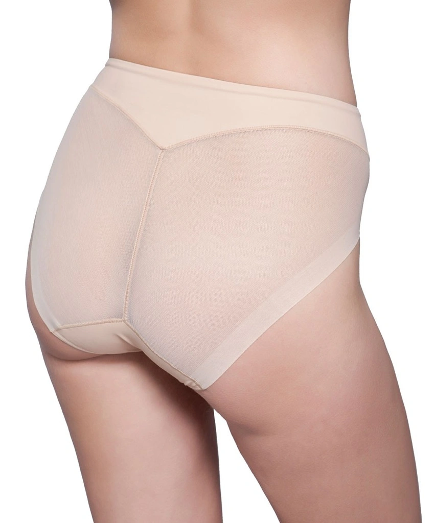 Cette culotte de contrôle combine l’effet gainant à l’effet tanga grâce à sa bande plate et son effet « Ventre plat ».