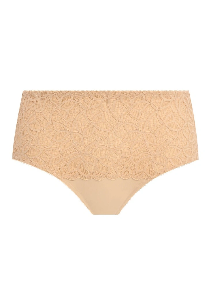 - Panneau avant en dentelle stretch doublé de tulle pour un ventre lisse et estompé