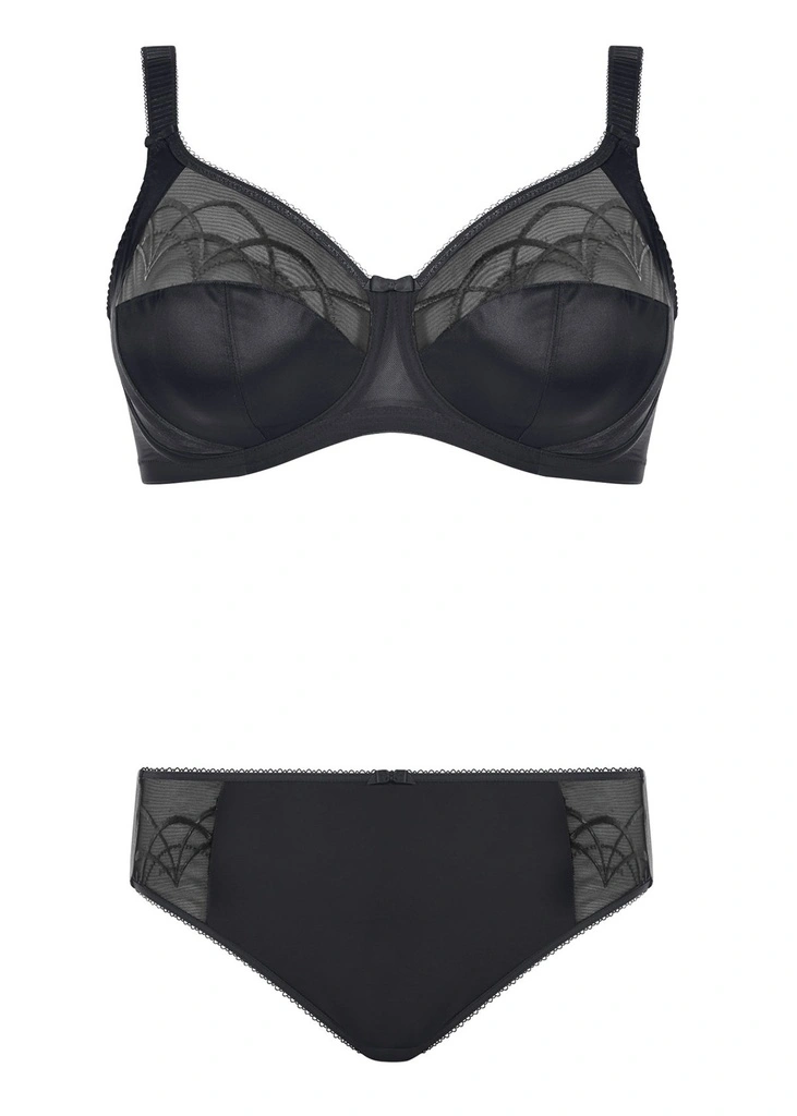 Profitez du bien-aller parfait que le soutien-gorge bonnet entier Cate en noir vous apporte. Conçu dans une broderie transparente avec des bonnets 3 pans en satin, son renfort latéral vous offre une poitrine projetée en avant et exceptionnellement rehaussée. Son motif arc qui orne le haut bonnet complète le look