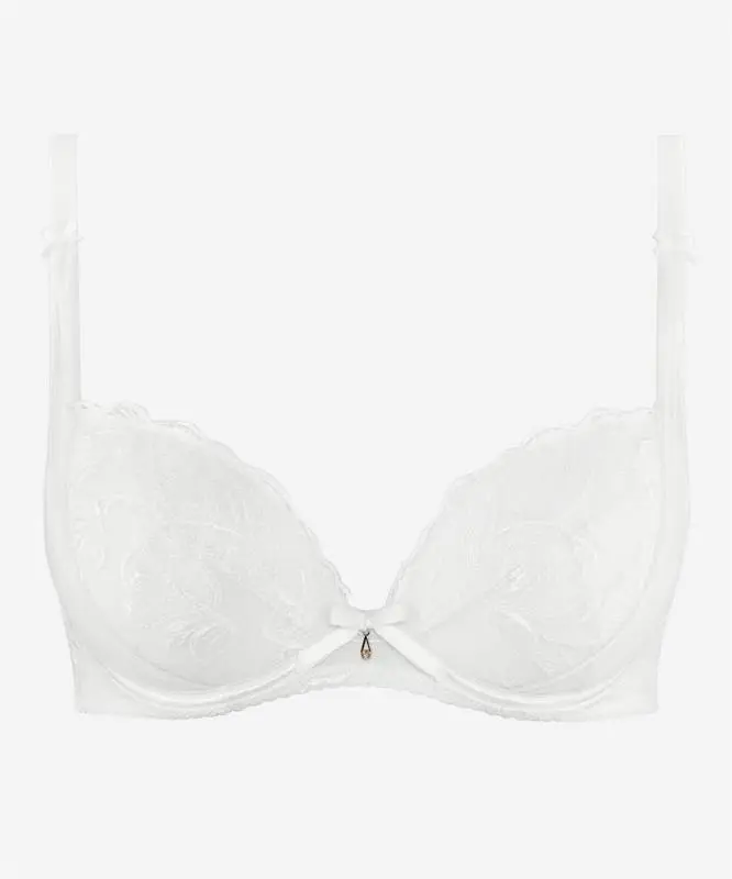 Le soutien-gorge push-up à coussinets Fleur de Tattoo est une véritable parure de séduction. Son décolleté profond et généreux est dessiné par une mousse en trois parties avec des coussinets amovibles. Les bandes satinées des bonnets en demi-lune subliment le décolleté, pour un porté féminin et sexy.