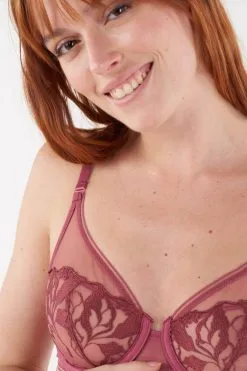 Soutien-gorge armaturé en voile avec broderie, les bonnets sont emboîtants pour plus de confort.