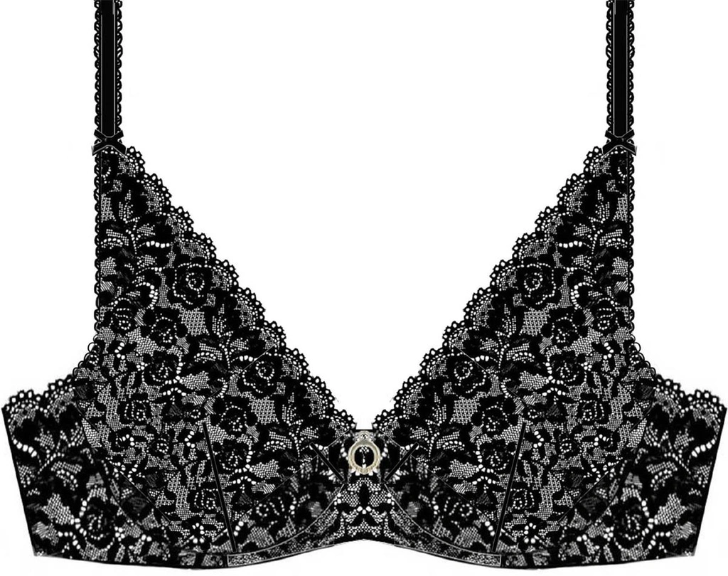 Avec sa forme plongeante, le soutien-gorge Triangle Plunge Rosessence offre un décolleté spectaculaire tout en chic et raffinement. Son bijou à strass Swaroski illuminela dentelle dentelle jacquard, telle une étoile dans la nuit.