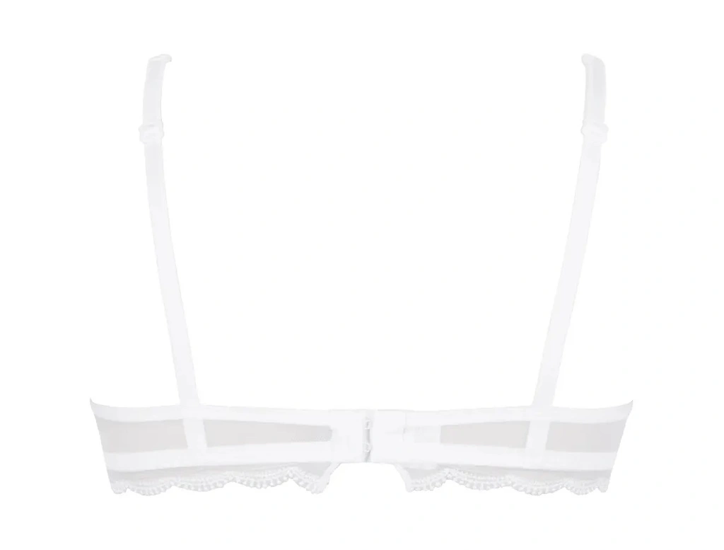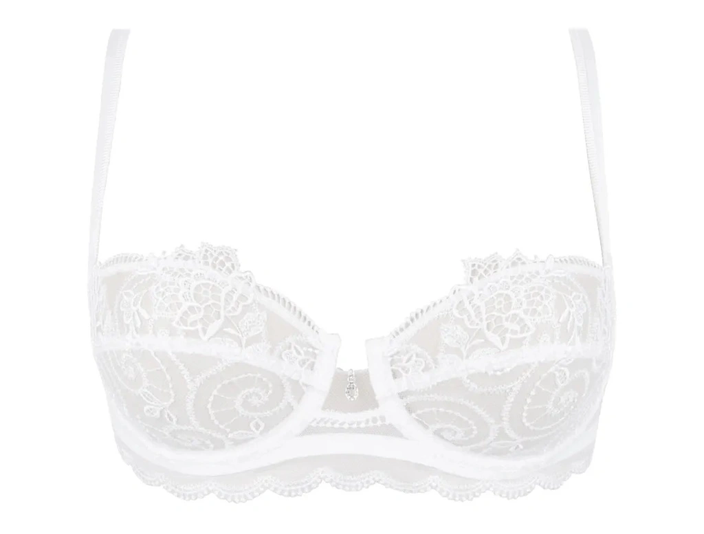 en bas. Petit galon guipure volanté à l’ entre gorge. Bretelles spaghettis