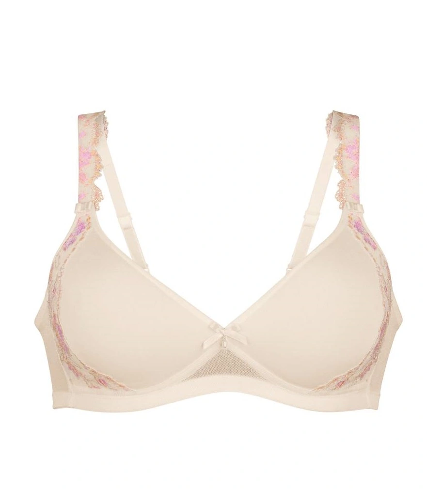 Vive la femme : le soutien-gorge triangle sans armatures Colette affiche son côté séducteur avec un décolleté particulièrement profond. Le soutien-gorge d’allègement avec coques Spacer respirantes joue sur l’époustouflante dentelle florale tricolore avec ses inserts latéraux sur le bonnet et sur les bretelles.