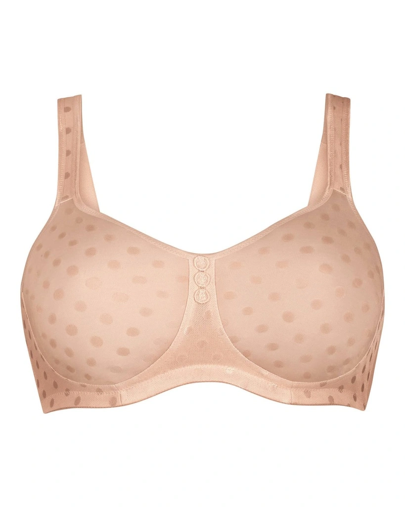 Tout simplement le soutien-gorge chouchou du quotidien ! Le jacquard à pois du nouveau soutien-gorge pour prothèses Airita est respirant et combiné avec des bonnets spacer exclusivement développés pour vous procurer une sensation de bien-être unique. Sa matière spacer respirante galbe une belle forme naturelle, dissimule ce qu’il faut sans marquer la peau et nivelle discrètement les inégalités. Les bords de la matière spacer sont extrêmement plats et suivent ainsi admirablement la ligne du décolleté.