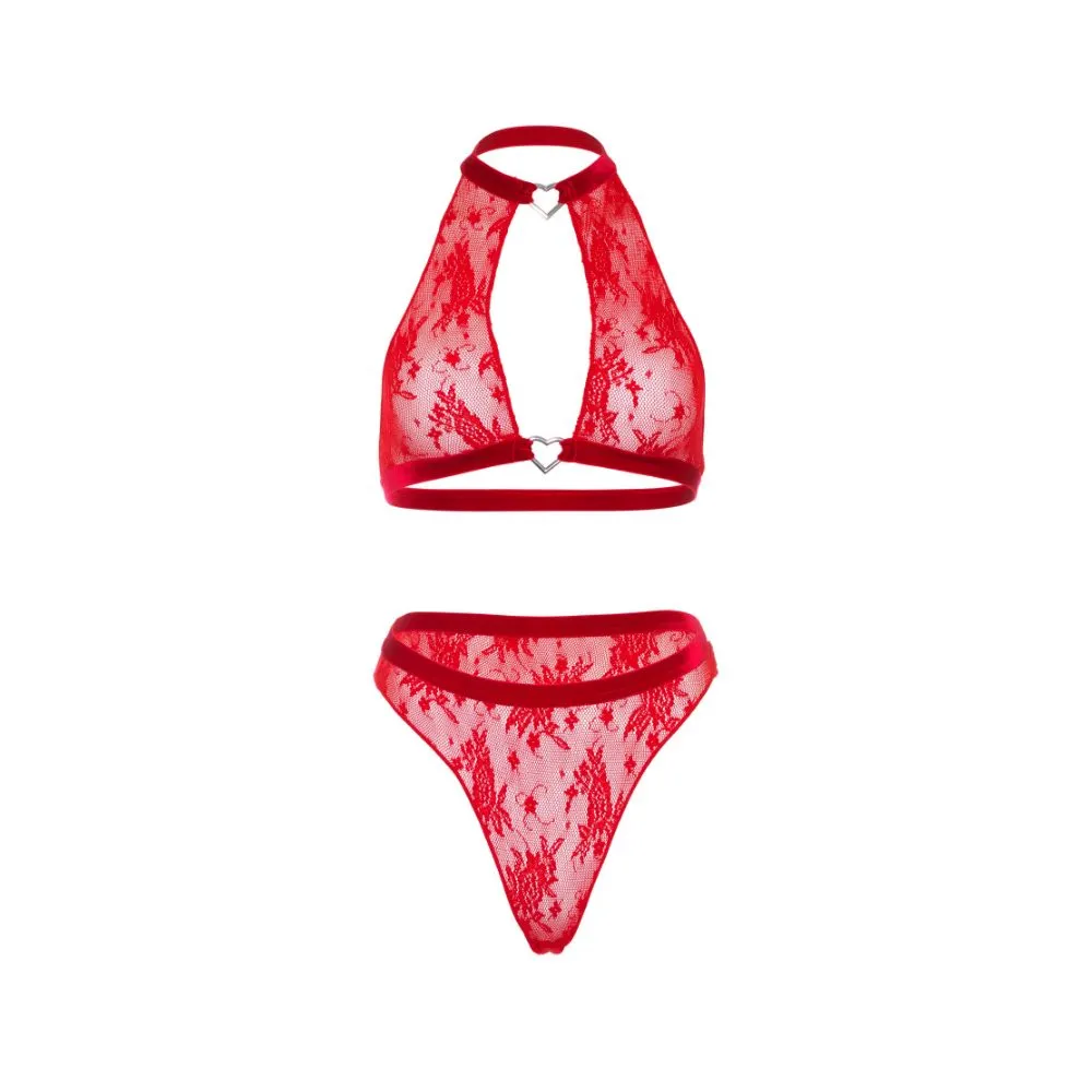 Soutien-gorge Transparent Sexy & String Dentelle – 2 Pièces – LEG AVENUE 86116 – Rouge 003