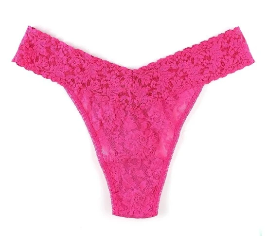 | Le string le plus confortable au monde. La ceinture révolutionnaire et flatteuse à l’avant et à l’arrière en V de HANKY PANKY, leur design signature depuis plus de 30 ans. String taille unique dans la dentelle stretch emblématique de HANKY PANKY. Convient aux tailles XS à XL. Original Rise s’ajuste plus haut sur les hanches. composition: – corps 100% nylon – bordure 90% nylon / 10% élasthanne – doublure entrejambe 100% coton Supima® entretien : laver à la main à l’eau froide avec un détergent doux et sécher à plat ou suspendu |