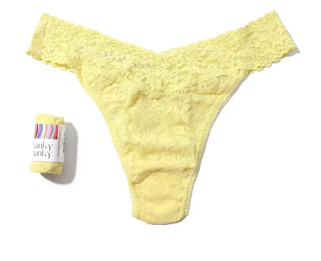 | Le string le plus confortable au monde. La ceinture révolutionnaire et flatteuse à l’avant et à l’arrière en V de HANKY PANKY, leur design signature depuis plus de 30 ans. String taille unique dans la dentelle stretch emblématique de HANKY PANKY. Convient aux tailles XS à XL. Original Rise s’ajuste plus haut sur les hanches. composition: – corps 100% nylon – bordure 90% nylon / 10% élasthanne – doublure entrejambe 100% coton Supima® entretien : laver à la main à l’eau froide avec un détergent doux et sécher à plat ou suspendu |
